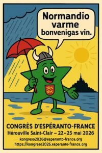 Il secondo si tiene a Hérouville-Saint-Clair, nell’area di Caen in Normandia, ed è il congresso annuale di Espéranto-France, aperto anche agli stranieri. Si parte già venerdì 22 con un convegno accademico su “Esperanto e Matematica” e la proiezione di un documentario con il regista presente. Nei giorni successivi sono previste conferenze storiche, una grande cena normanna, concerti e sessioni informative sui prossimi eventi della comunità esperantista mondiale. Chi si ferma fino a martedì 26 potrà partecipare a un’escursione sulle spiagge dello Sbarco in Normandia del giugno 1944.