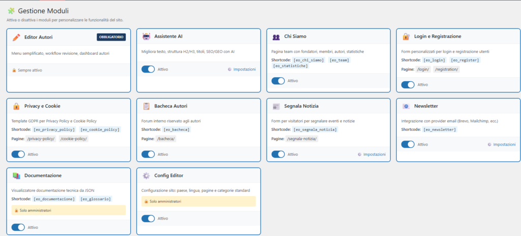 EO Suite è il cuore operativo del blog. Comprende 10 moduli specializzati: