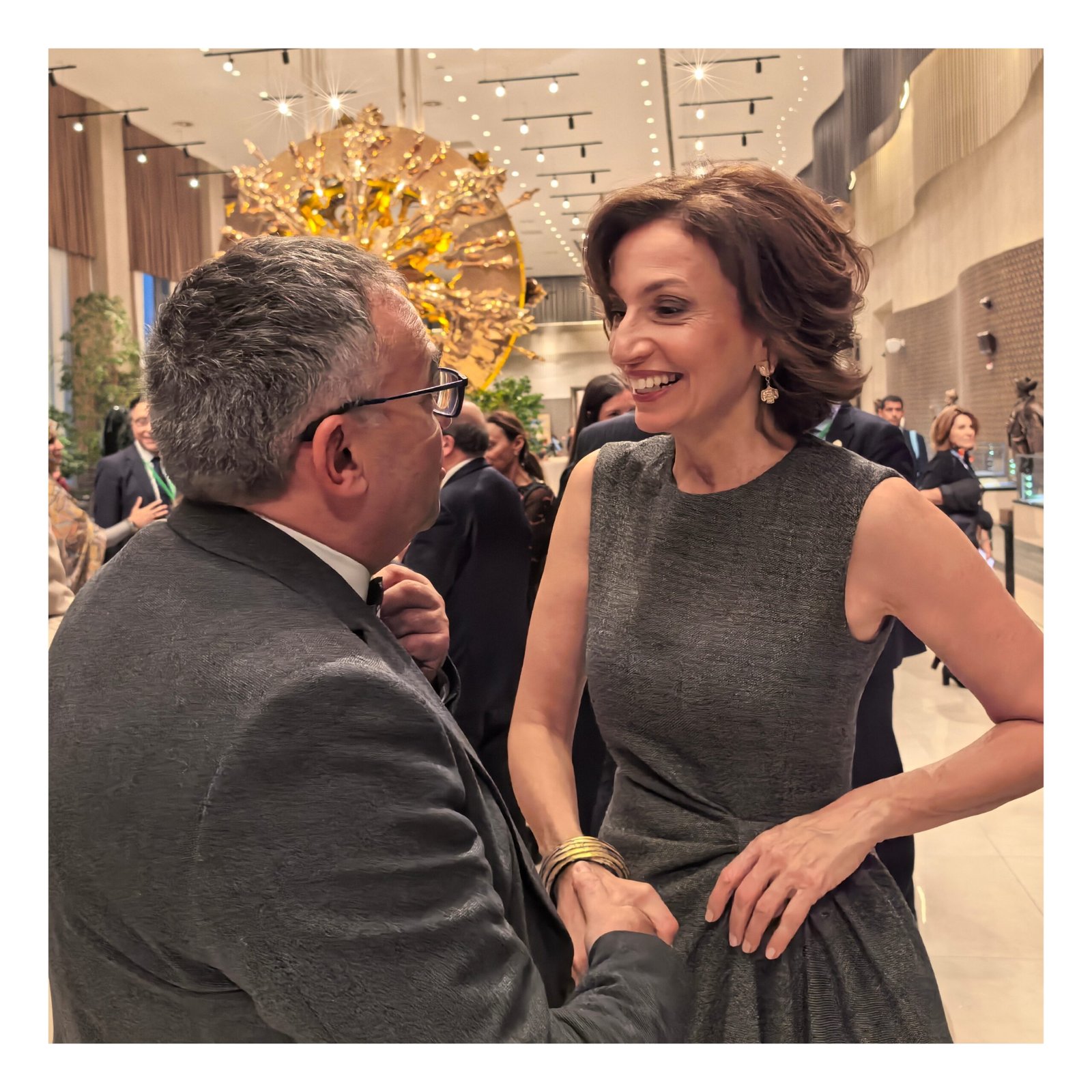 Maximiliano Garcia, membro dell’Associazione Esperanto “Giorgio Canuto” di Parma e della Lega Internazionale degli Insegnanti Esperantisti (ILEI), si è intrattenuto in conversazione con il Direttore Generale uscente dell’UNESCO, Audrey Azoulay, durante la Conferenza Generale di Samarcanda, ricordandole i valori dell’esperanto.